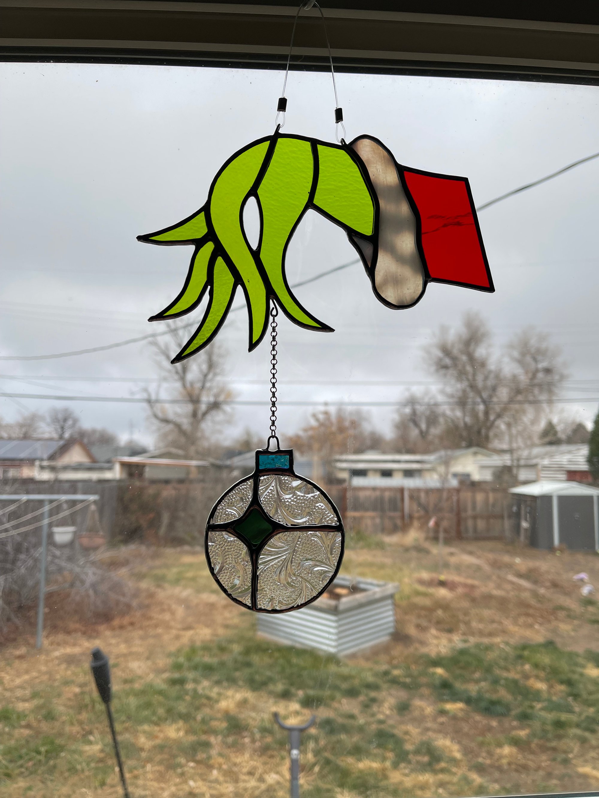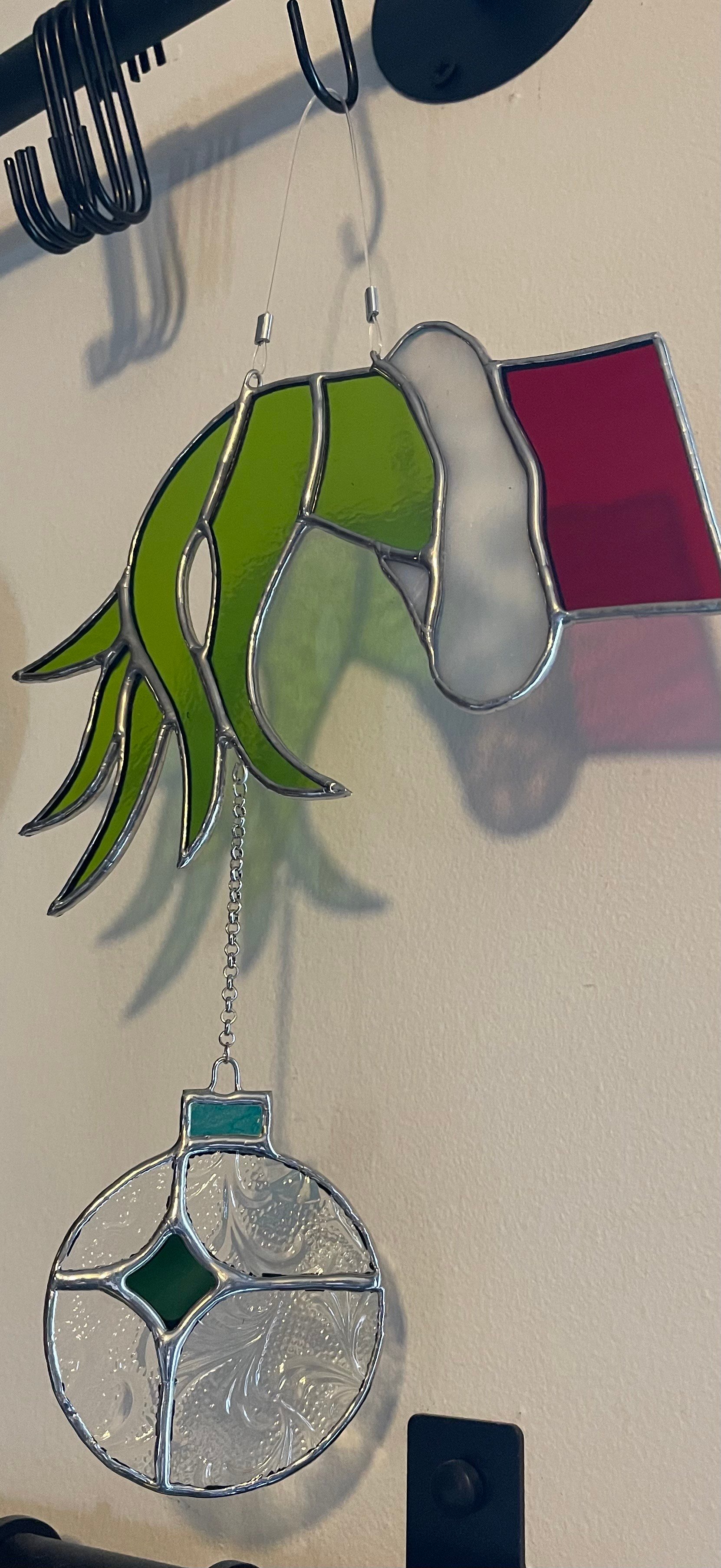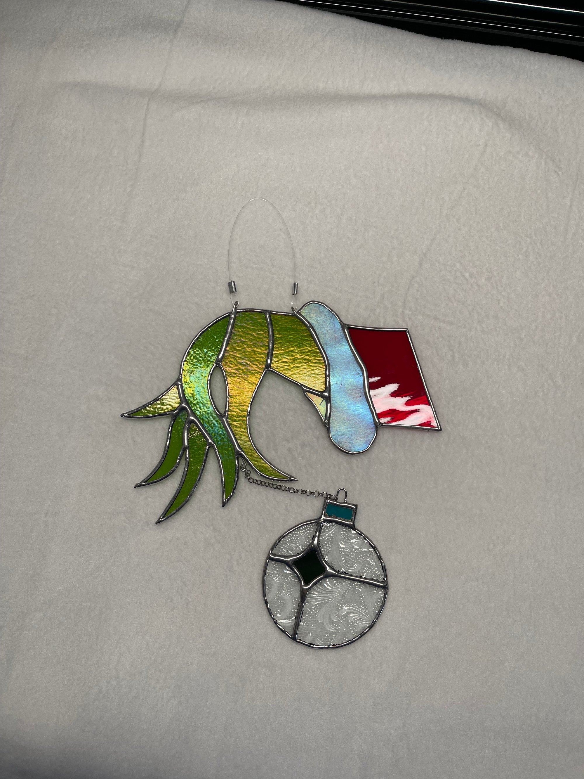 Not the Grinch stealing an ornament from the towns people. Measures approximately 7inx9in with the hanging ornament